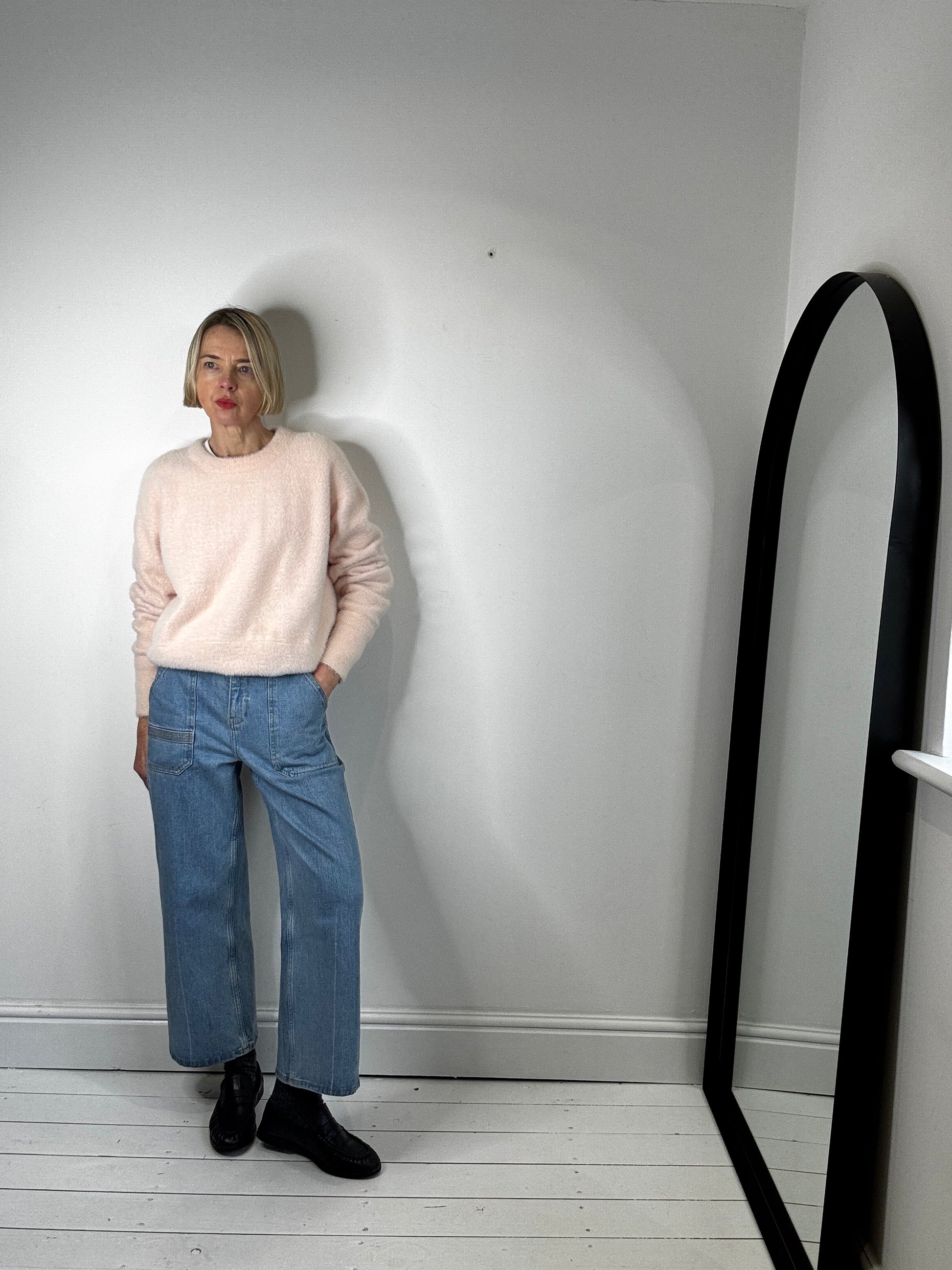 Super fluffy Topshop Boutique jumper, thick drapey tufty yarn that's incredibly soft, wear it next to skin or layer, soft pale pink, 2 faint marks on cuff and hem - see pics, labelled size small but like all old school Topshop boutique its oversized, FIT 10 to 12