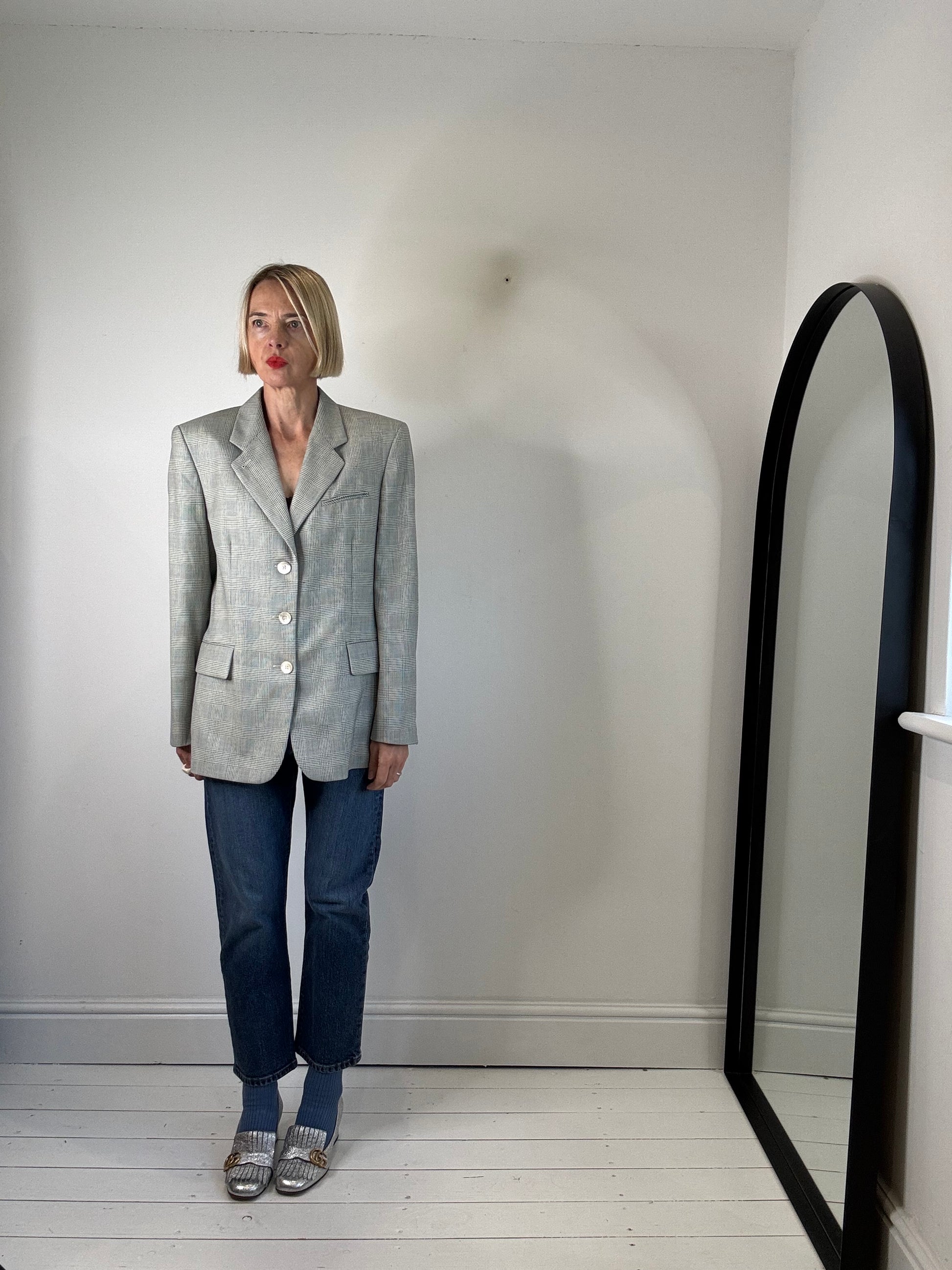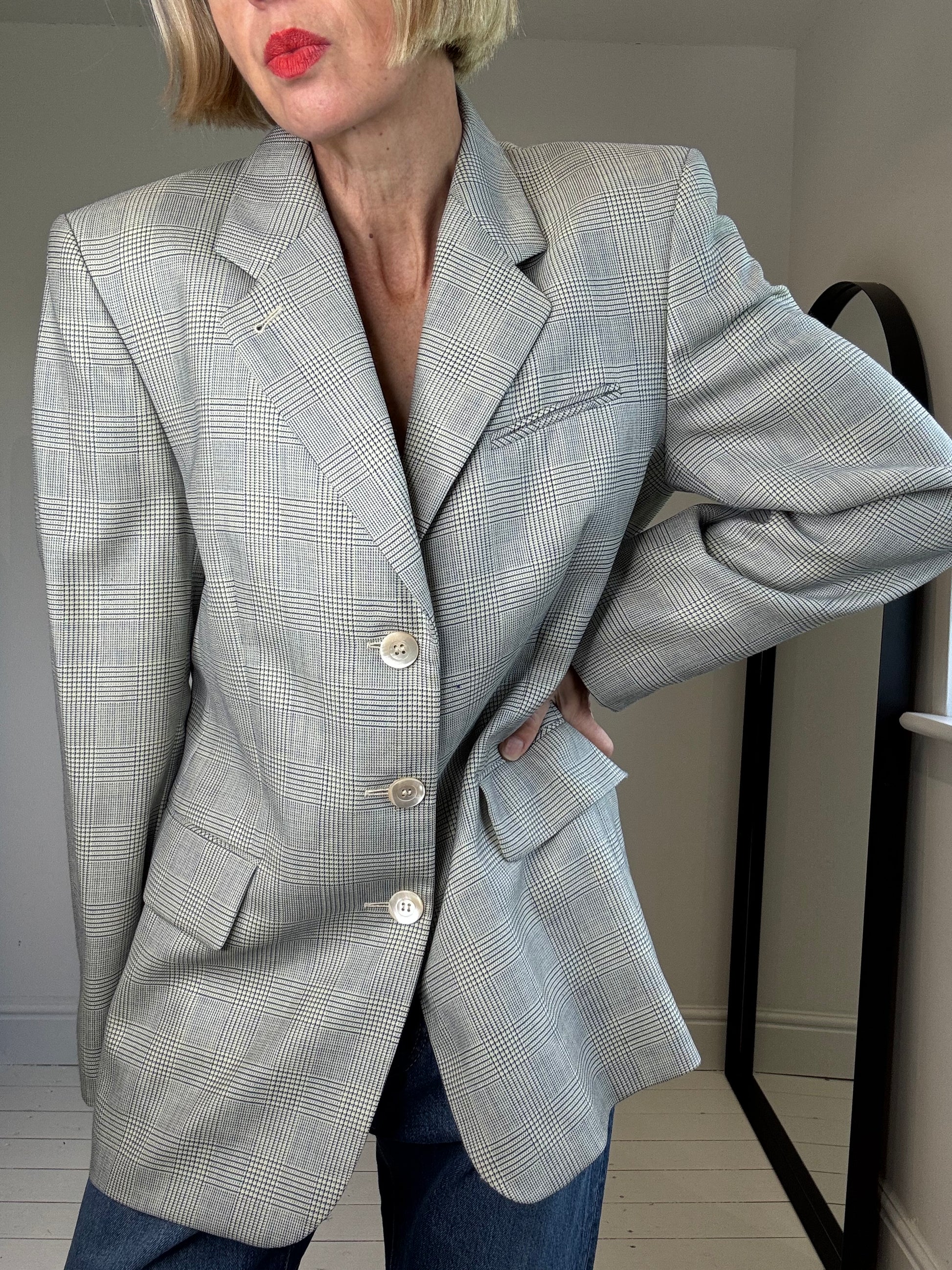 FIT 8-12 light tailored 100% virgin wool, fully lined with 100% viscose, 3 button single breasted blazer with flap pockets and ticket pocket, pearlescent 4 hole buttons
