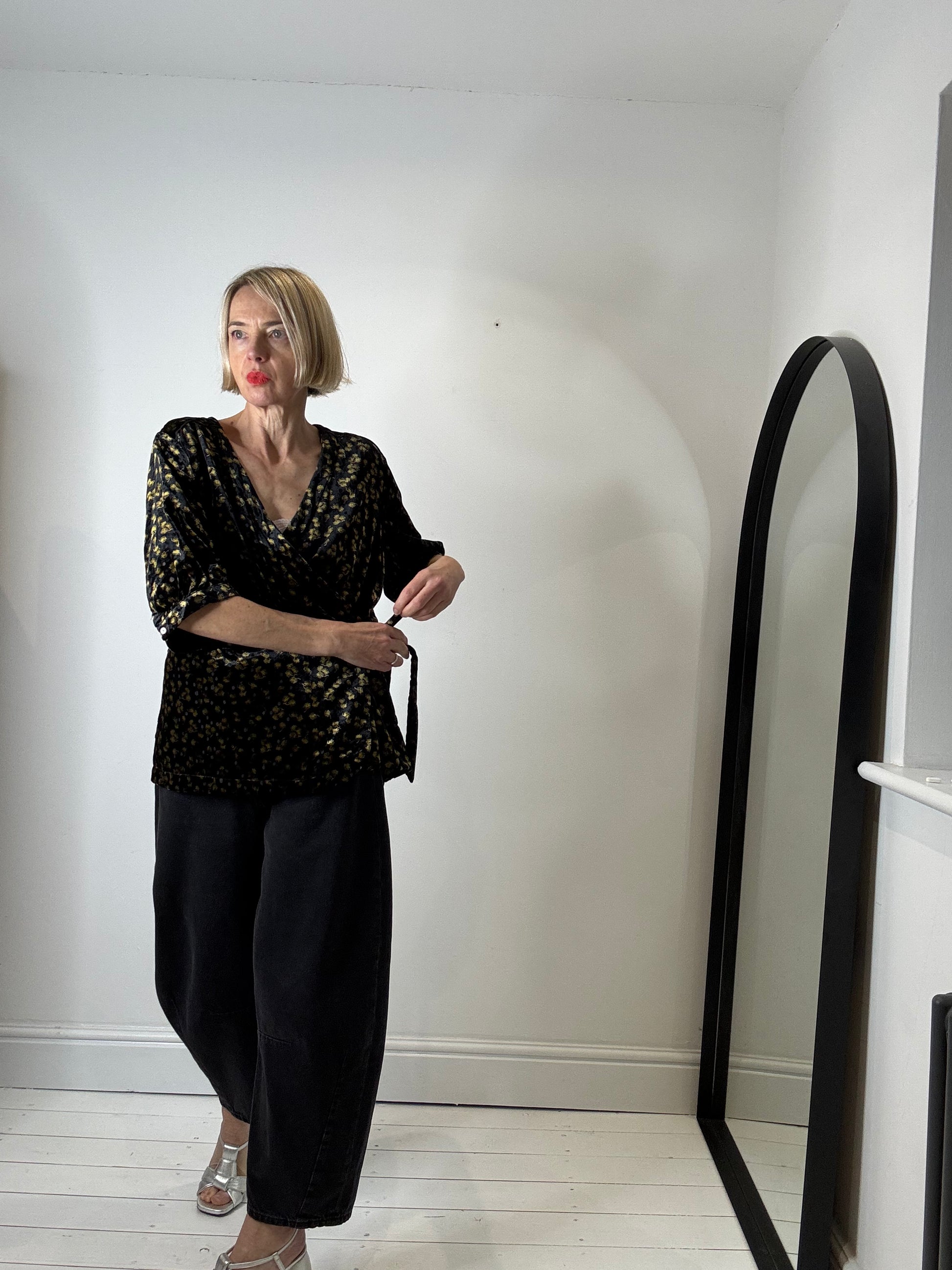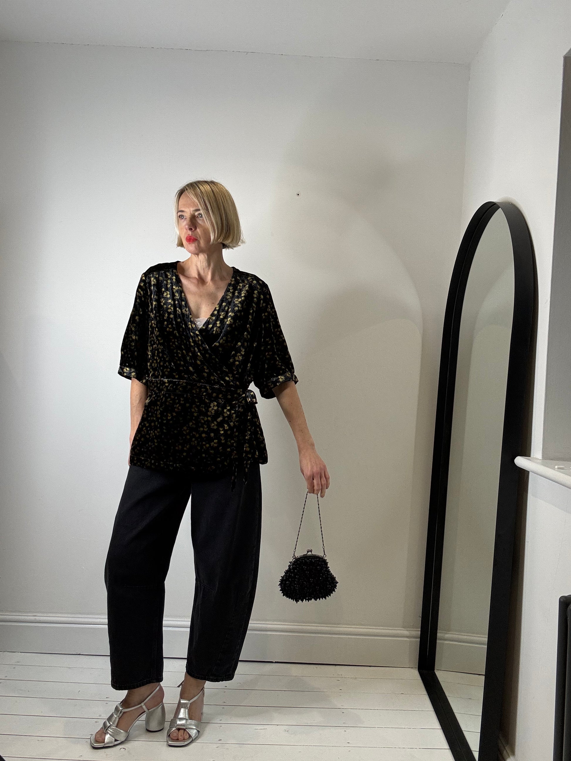 Velvet printed wrap top